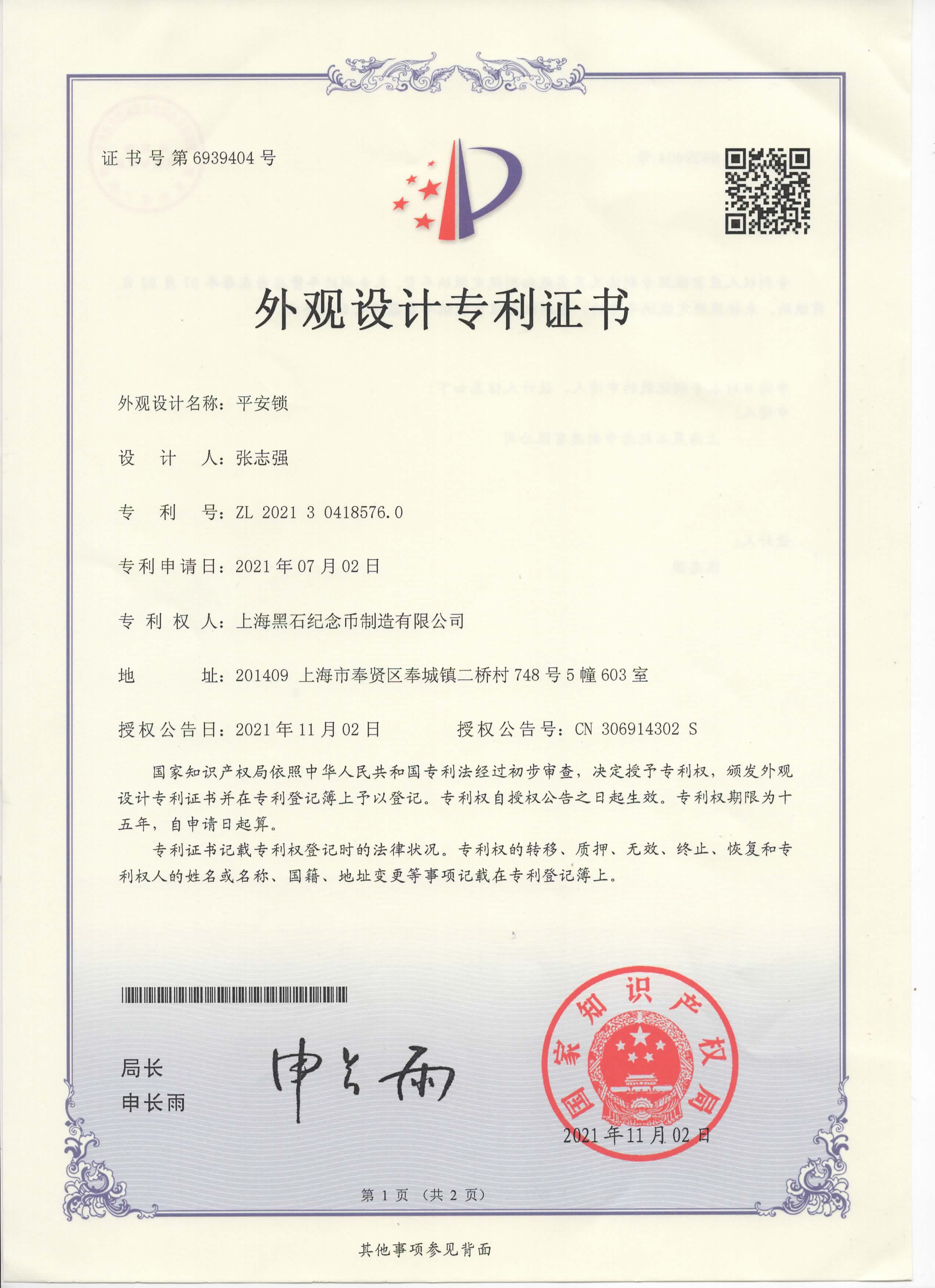 超過300萬枚紀念幣定制的歷練,擁有行業內強大的研發生產設計能力·榮獲多項專利證書